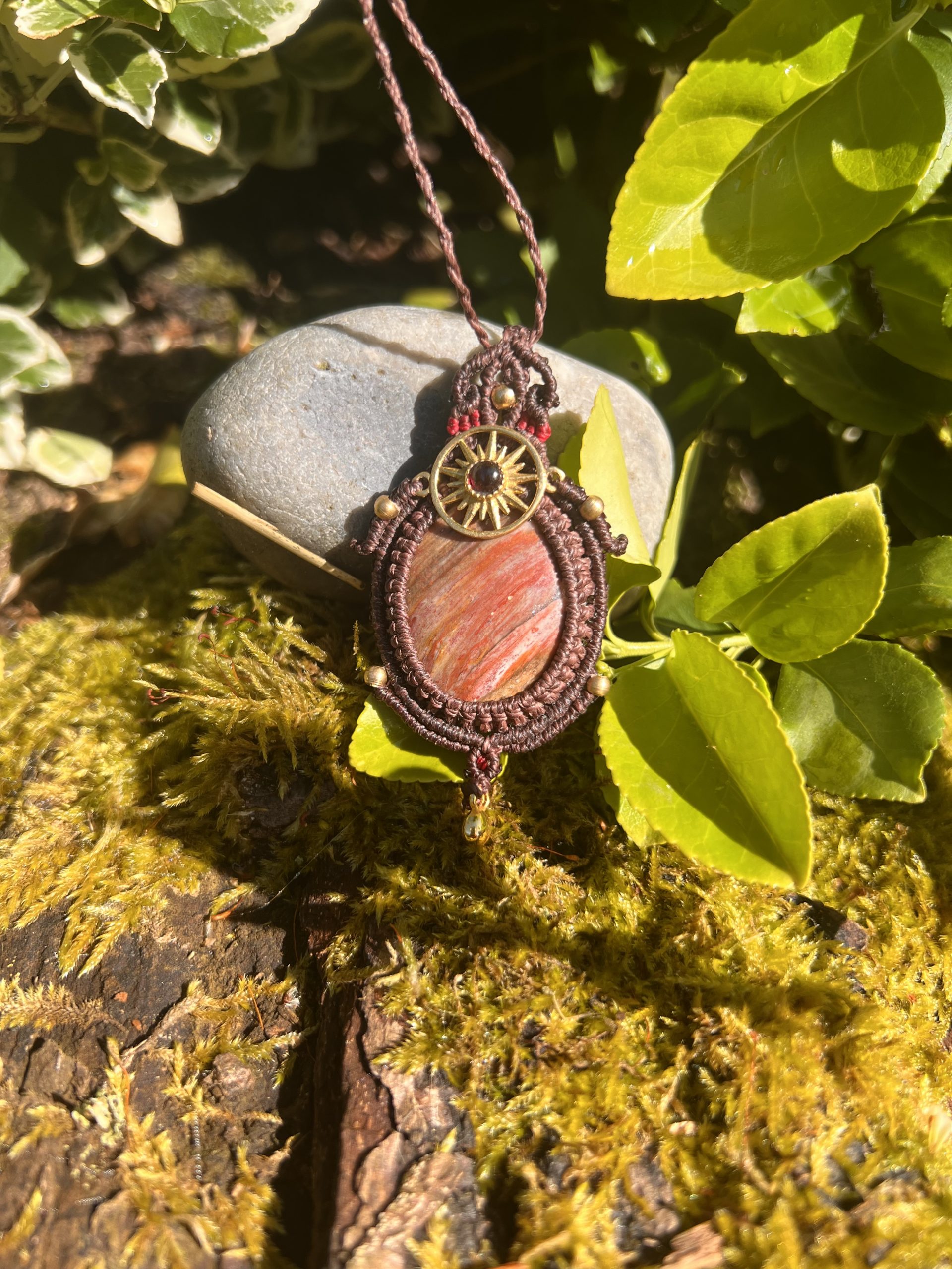 • Amulette en Amazonite – Force, Joie & Courage – Bijou énergétique en micro-macramé