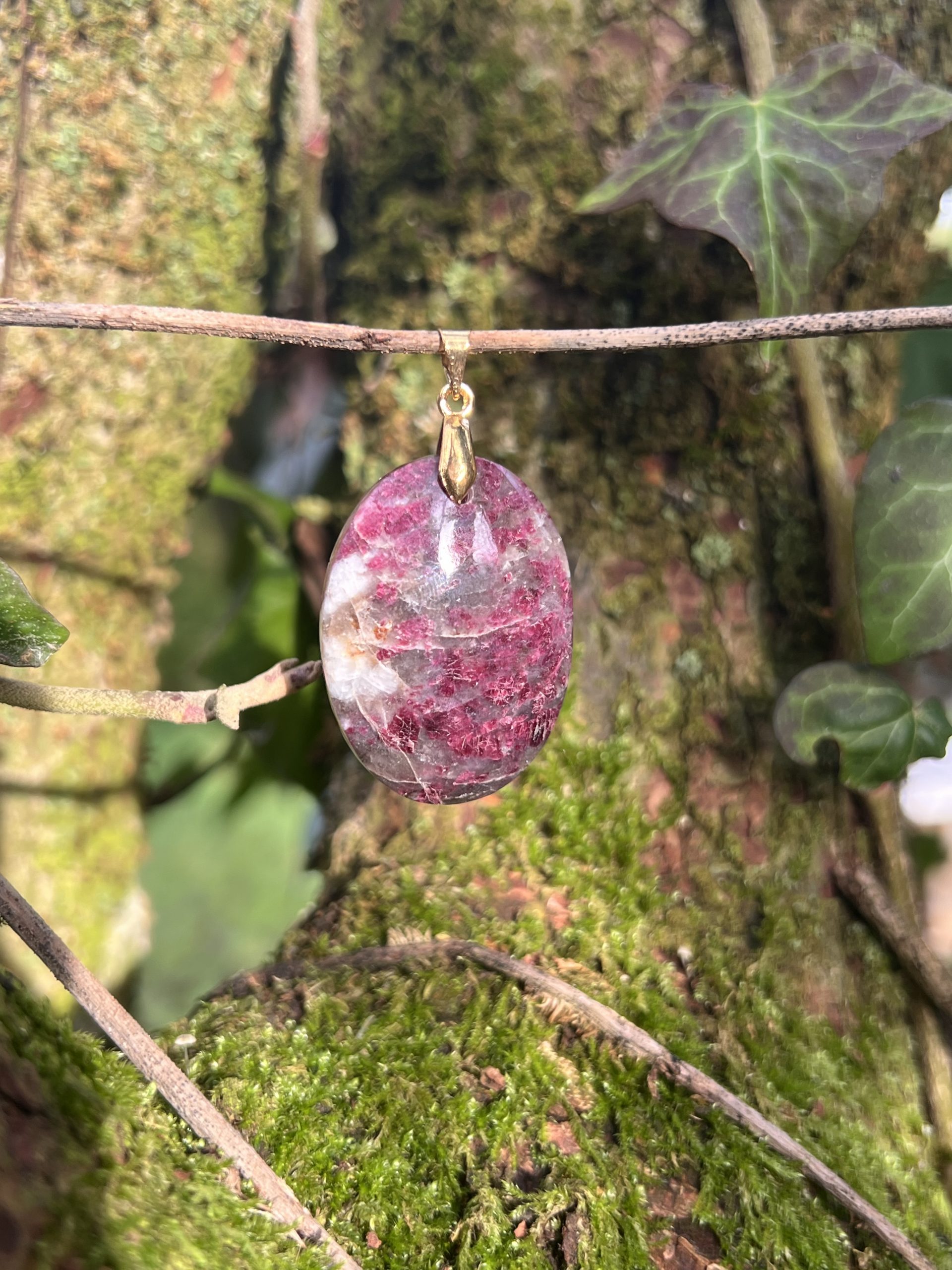 Pendentif en Rubellite (Tourmaline Rose), pierre naturelle soutenant l’équilibre émotionnel, l’ouverture du cœur et la circulation de l’énergie.