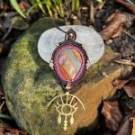 Ce bijou a été entièrement réalisé à la main en micro-macramé autour d’un magnifique jaspe polychrome aux paysages naturels fascinants.